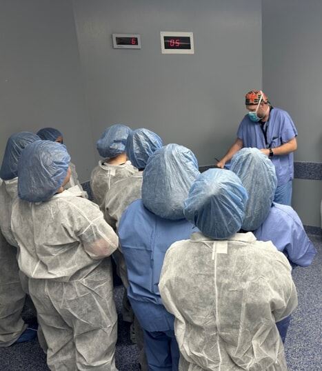 During the visit, students experienced a variety of activities designed to give them a firsthand look at various hospital operations. Activities included practicing CPR on interactive mannequins, understanding required personal protective equipment necessary prior to surgery, the proper process for putting on a surgical cap, gown and mask and correct handwashing techniques.